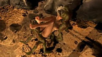 In their cave, goblins gangbang a gorgeous blonde elf.