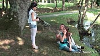 An amateur ANAL trio including two stunning teenage females in a homemade film