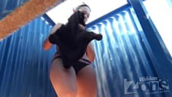 Secret voyeur with enormous tits and a tanned complexion