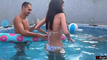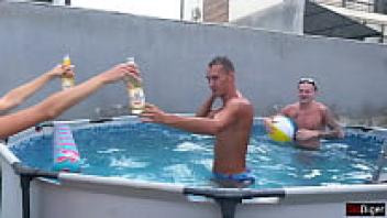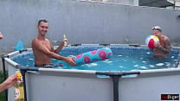 Hardcore Sex and Creampie at The Pool's Rough Gangbang Party