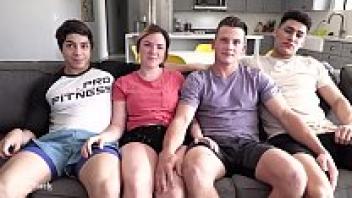 TEEN ORGY: first time rimming, huge cock splits holes!
