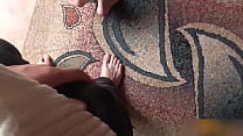 Real voyeur business man lets his hairy Turkish muslim maid clean naked for him