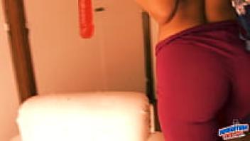 Big Ass Teen gagging on dildo and drooling. The Cameltoe Pussy