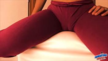 A Latina round ass with a big pussy gape and puffy cameltoe.