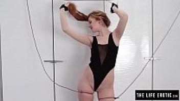 As she masturbates to an orgasm, the bdsm beauty is confined and caged.