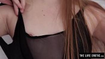A redhead teenager who enjoys bondage gives herself a lot of fingers.