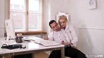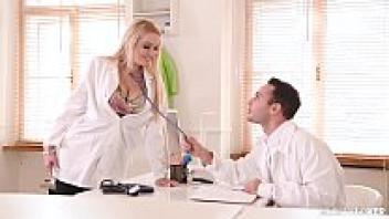Busty lovers Nurse Amber Jayne uses her hot pussy to ride Doc&'s big cock.