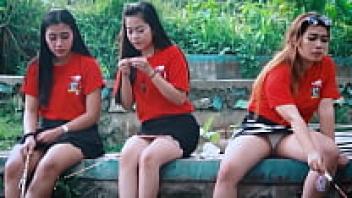 A glimpse of a gorgeous Asian woman wearing an upskirt and flashing panties