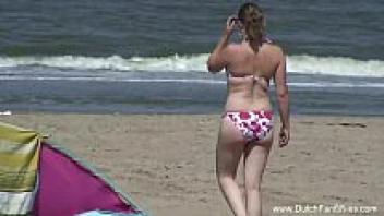 On a French beach, a hairy amateur milf allows a filthy man to climax on her pussy.
