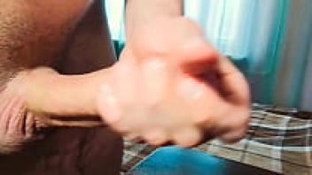 Strong orgasm moans as he makes his big cock cum like a fountain.
