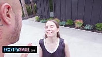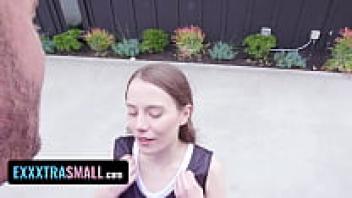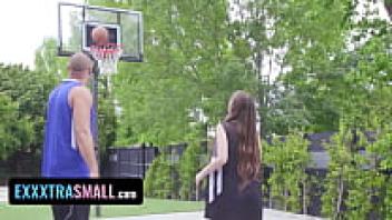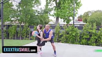 Exxxtra Small: A hot babe with a naturally hairy pussy gets her basketball coach to fill it up.