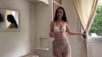 Before going to bed, the attractive stepmother neglected to put on underwear.