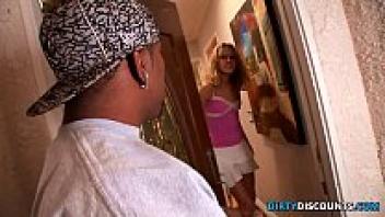 Daizy Cooper, an ebony babe, rides a huge black cock while sucking.