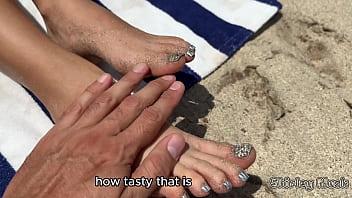 BUSTY MILF must pay up immediately on the beach after losing a wager.