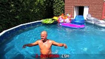 Super Hot Amateur Threesome by the Pool in 3-Way Porn
