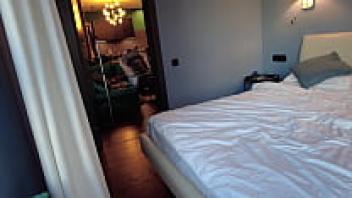 This massive pig's cock is being sucked by the hotel cleaning lady.