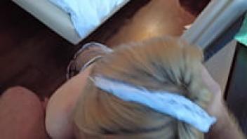 The adorable girl did not swallow the blowjob cumshot.