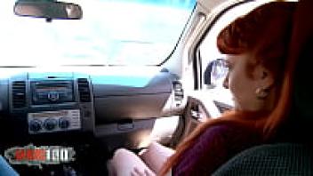 Sex in the car with a horny brunette wearing glasses