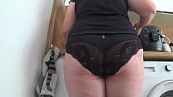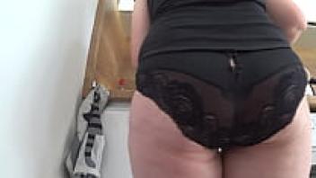 To spy on his mature, overweight wife, the husband installs a covert camera at home. Juicy PAWG in an upskirt and underwear. homemade fetish.