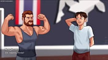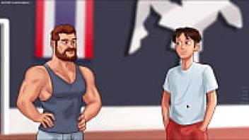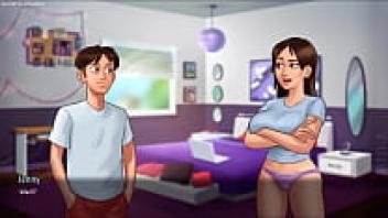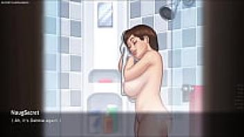 Stepsis Jenny was caught playing with her enormous breasts with another girl in the 3D porn game Summertime Saga.
