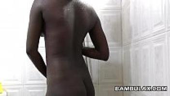 Ebony natural boops taking a shower