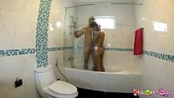 Before having creampie sex, Thai takes a shower with her partner.