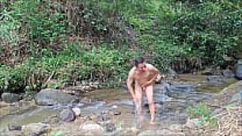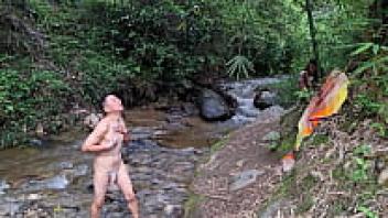 A BUSTY AND BIG ASS peasant woman enjoys being outside in the jungle near a forest river.