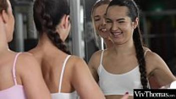After working out together, attractive gym chicks have a wild climax by eating each other's pussies.