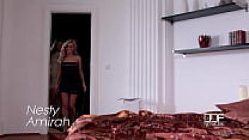 A gorgeous blonde with an anal sex and blowjob wearing high heels and fishnet stockings