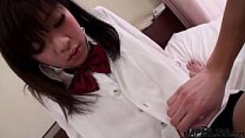 A Japanese beauty with tiny titts is sprayed with sperm.