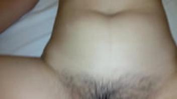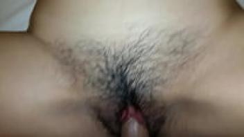 He is allowed to cum on her hairy pussy by her perverted stepmother.