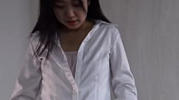 Slender Japanese beauty, uncensored. Playing with shaved pussy and blowjob,