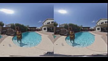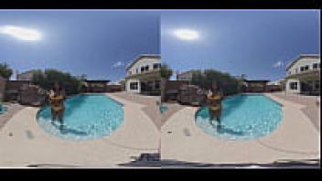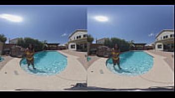 Preview and full video of an ebony adolescent getting wet in VR180 can be found at MyEroticVR.