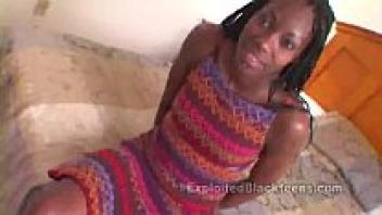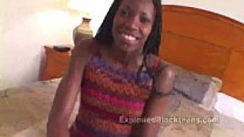 In this interracial video, a black adolescent first-timer adores a white cock.