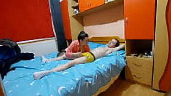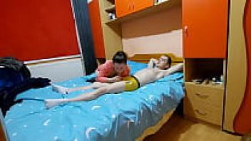 I coated my Asian girlfriend's sister with cum and surprised her in her room!