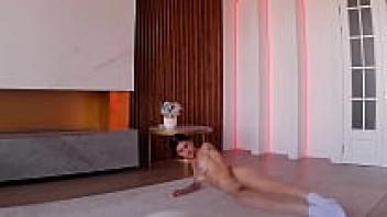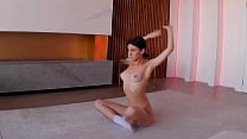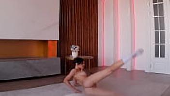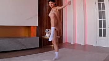 A youthful, lustful girl with a large ass and a flawless pink pussy