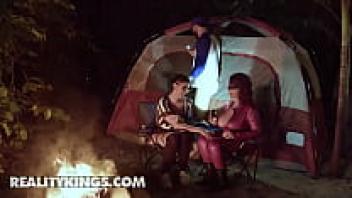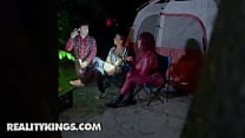 REALITY KINGS: After exchanging terrifying tales by the campfire, Roxie Sinner and Sarah Arabic enter the tent for a three-some.