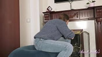 A mature stepmother reveals her hot 18-year-old stepson her hairy pussy.