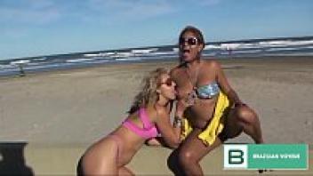 On a sandy beach, two females are sucking. (Entire video in red xvideos)