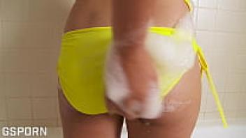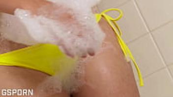 In the bathroom, a gorgeous Asian Thai girl flashes her hairy pussy and indulges in masturbation.
