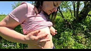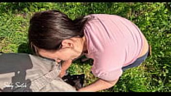 MILF with large natural tits offers a blowjob in this amateur outdoor video.