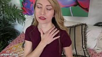 To finger her hairy pussy, Kasey Warner removes her underwear.