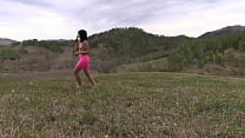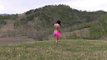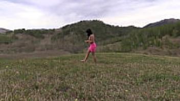 Beautiful ass running outside. In the outdoors, MILF undresses. PAWG.