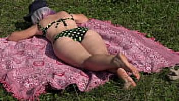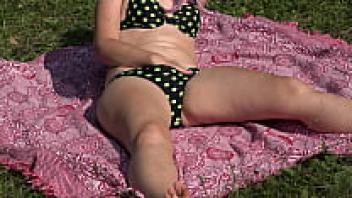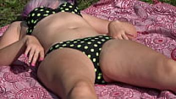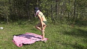 A voyeur in the woods is watching a female use a squirt to masturbate in order to have an orgasm. Hairy pussy and big ass.