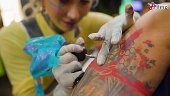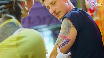 A tattoo artist who became a pornstar and an anal toy, adored by her own Client