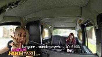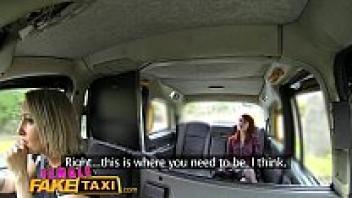 Redhead with tattoos is dominated by a female fake taxi lesbian.