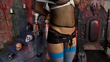 To achieve an orgasm, a bondage girl will blowjob, cumshot on underwear, and masturbate.
