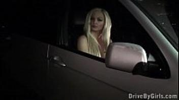 At a public dogging gang bang orgy site, a gorgeous blonde female is having sex with strangers.