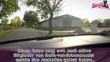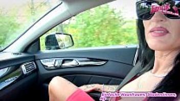 Public pick-up of German gigantic monster tits with spectacles, hitchhikers, outdoor lovers, and cum in mouth