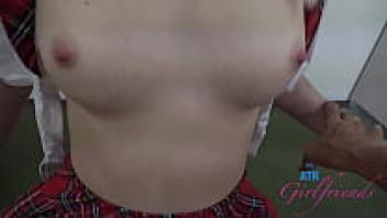 Britt Blair, a pigtail-wearing amateur student, has her pussy devoured before swallowing cock.